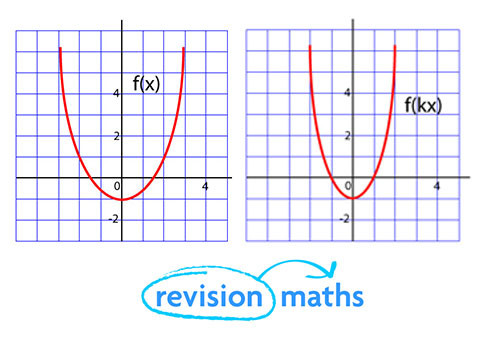 For every value of x, y takes the value it would have at kx. It is the graph of y = f(x) stretched by a factor of 1/k on the x-axis.